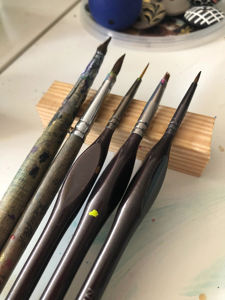 Every piece begins at our studio. We work with brushes and paints, treating every piece of wood as a miniature canvas. Every piece carries the subtle variations that only hand-painting can bring.