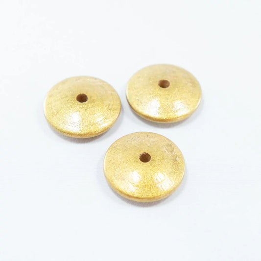 Brushed Antique Gold Wooden Bead in Flat Shape